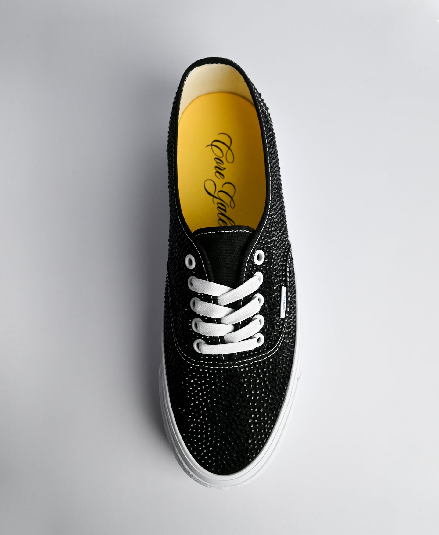 The Black/White Authentic is reinterpreted through Galerie Labs with hand-set crystal embellishments applied in Paris, France. Each pair is individually finished through an intensive artisanal process that can require up to twelve hours of detailed craftsmanship.